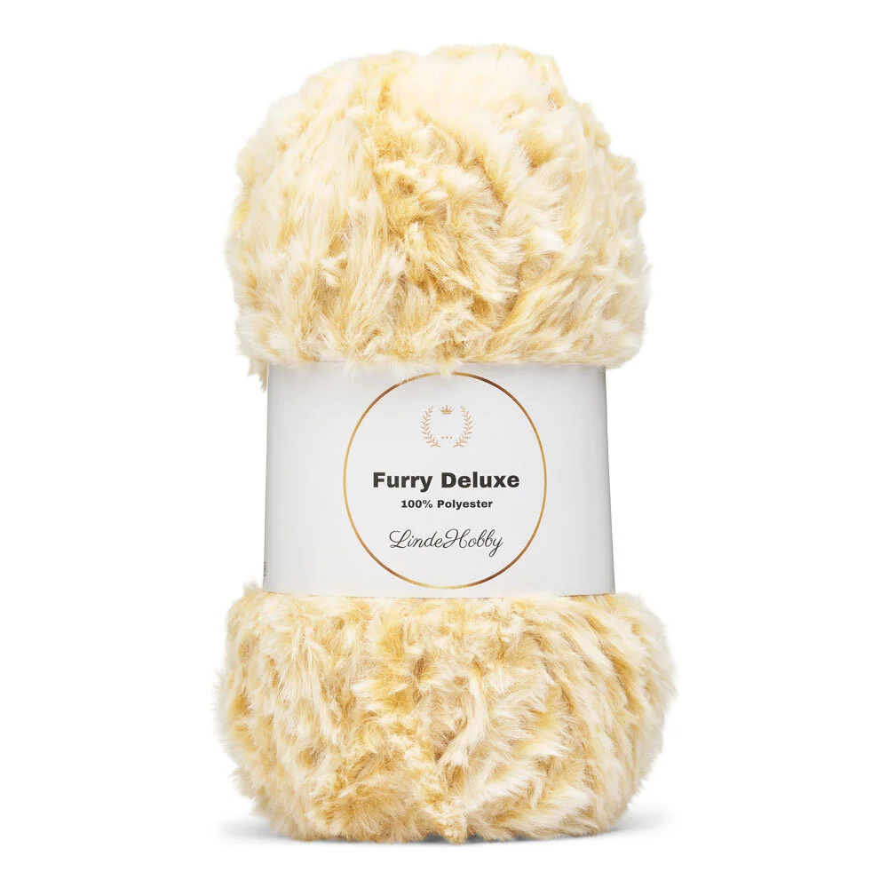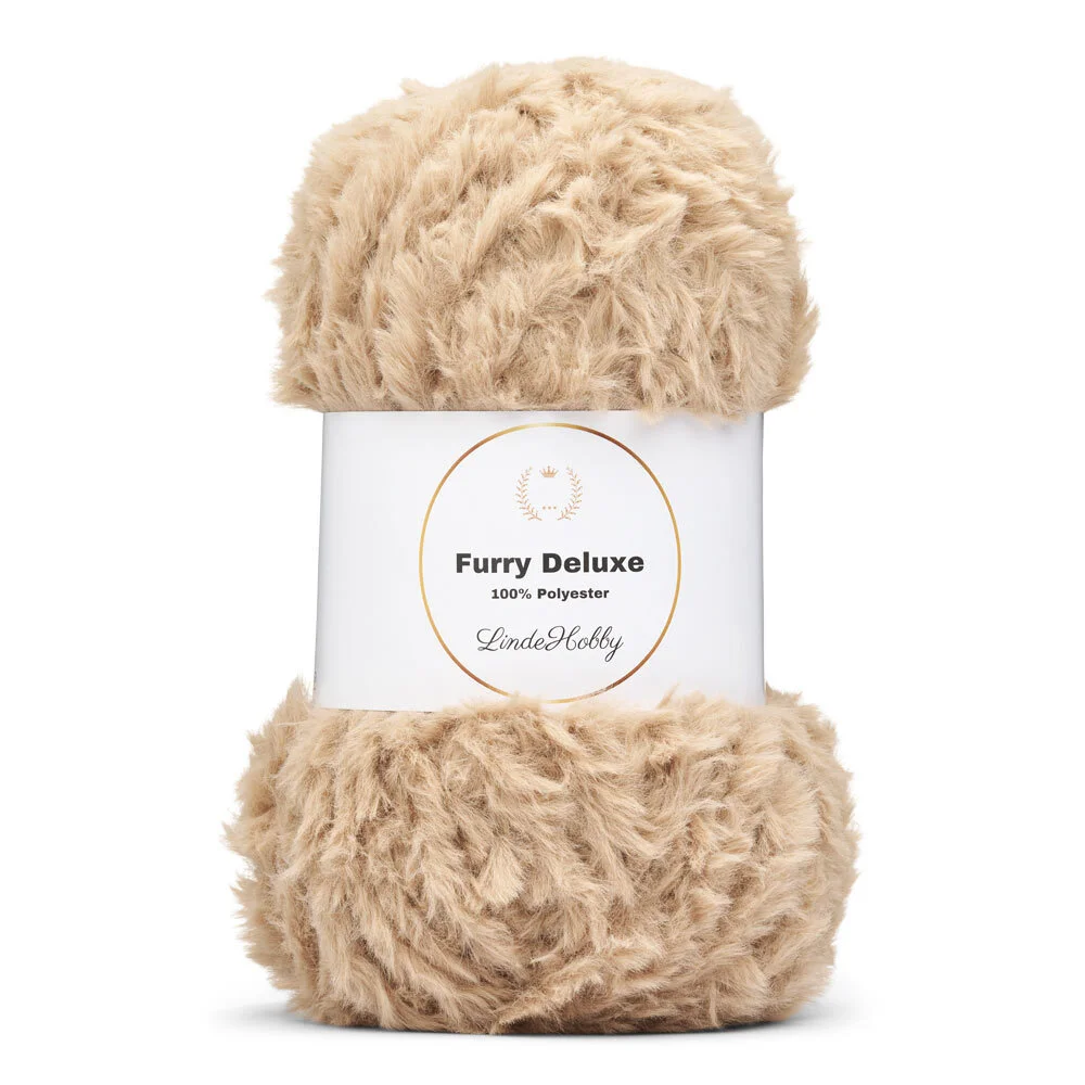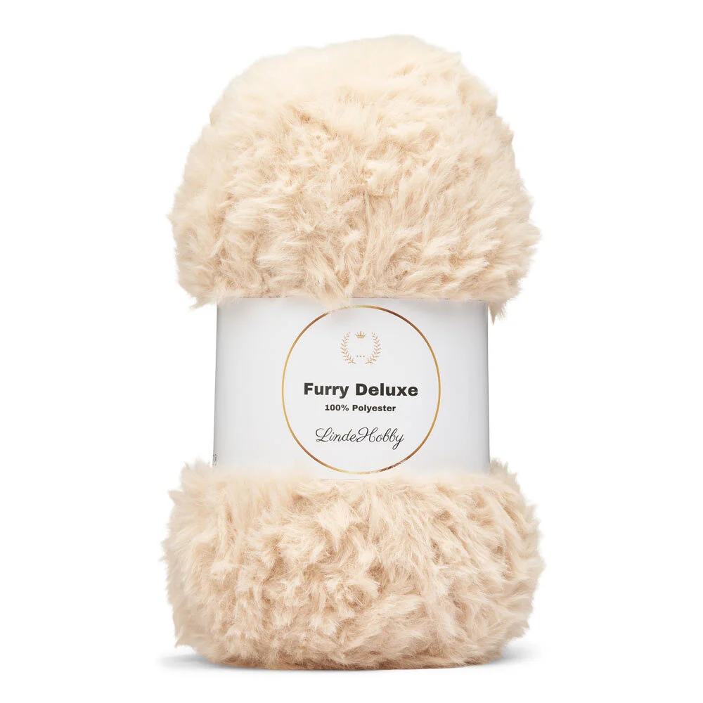 LindeHobby Furry Deluxe è un filato peluche di lusso con una struttura morbida e fluffy che dona ai tuoi progetti un aspetto vivo e decorativo. Il filato è realizzato in 100% poliestere ed è perfetto sia per dettagli che per accessori interi quando si desidera un effetto peluche.