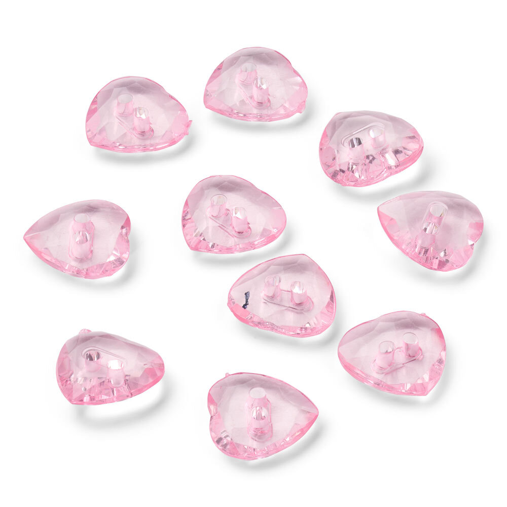 Questi bottoni cristallo rosa a forma di cuore di LindeHobby hanno una superficie lucida e sfaccettata che riflette splendidamente la luce. Ogni bottone ha un diametro di 12 mm e viene fornito in una confezione da 10. Sono realizzati in plastica leggera e sono adatti sia come decorazione che come chiusura funzionale.