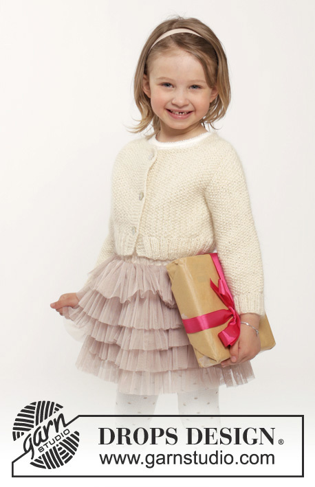 Giacca DROPS ai ferri con perline in " DROPS Alpaca " e " DROPS Kid-Silk ". Str. 2 - 10 anni.