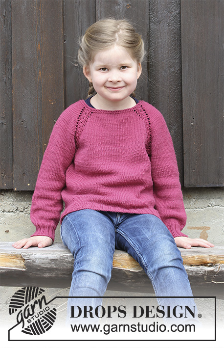 Blusa con raglan e ritorsioni, lavorata dall'alto verso il basso per bambini. Taglia 2 - 12 anni. Il lavoro è lavorato inDROPS Merino Extra Fine