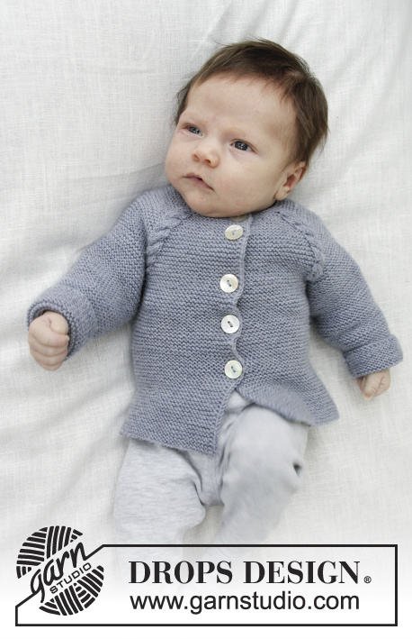 Giacca con ritorsioni, punto legaccio e raglan, lavorata dall'alto verso il basso. Taglia prematura - 4 anni. Il lavoro è lavorato in DROPS Baby Merino .