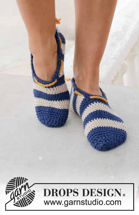 Pantofole all'uncinetto con righe. Taglia 35-43. Il lavoro è lavorato all'uncinetto in DROPS Paris.