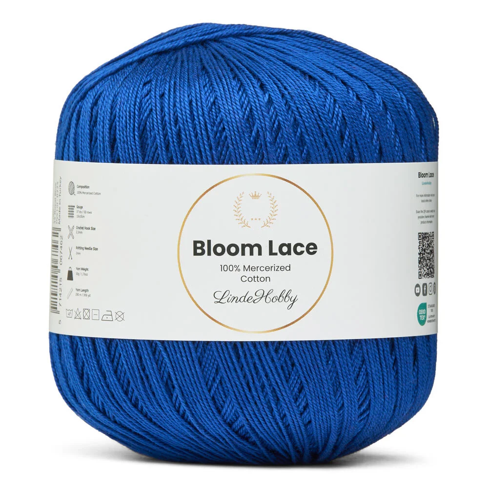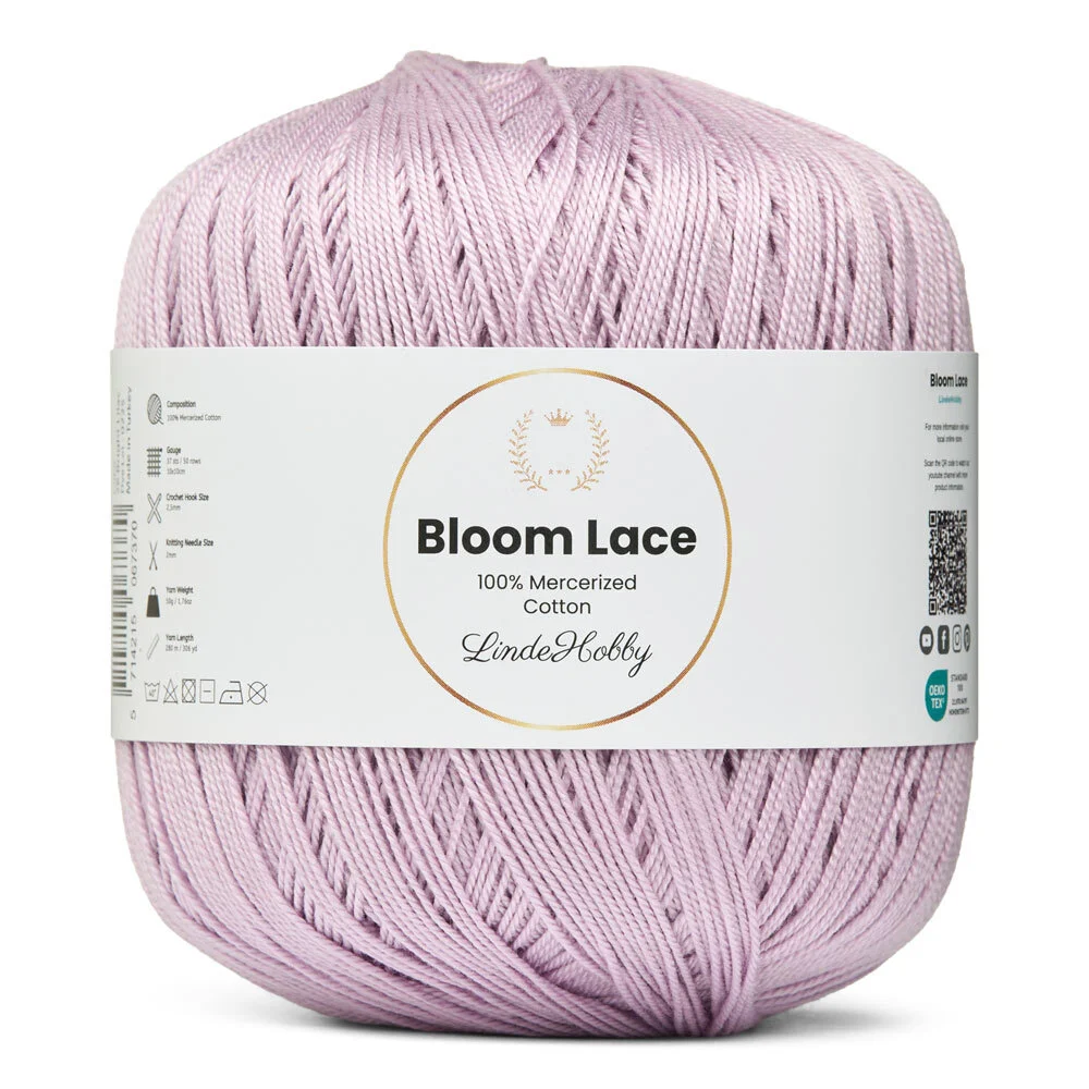 LindeHobby Bloom Lace è un filato lace di lusso realizzato in 100% cotone mercerizzato. Il filato ha una bellissima superficie lucida e una struttura compatta e liscia che conferisce un aspetto esclusivo al lavoro finito. Il filato fine e delicato è perfetto per progetti che richiedono precisione e una finitura elegante.