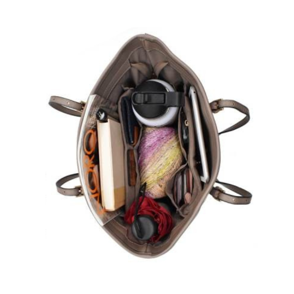La LYKKE Duo Tote Bag è una capiente ed elegante borsa da progetto in pelle vegana che unisce stile e funzionalità. L'interno ridisegnato con vari scomparti la rende ideale sia per i progetti di maglia che come borsa quotidiana chic.