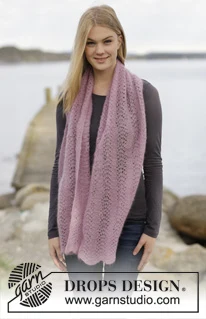 Il completo è composto da: Sedia DROPS lavorata ai ferri con 1 capo " DROPS Kid-Silk " con motivo a onde e cappello in 2 capi "Kid-Silk" a punto legaccio.