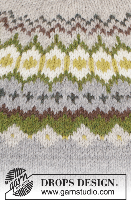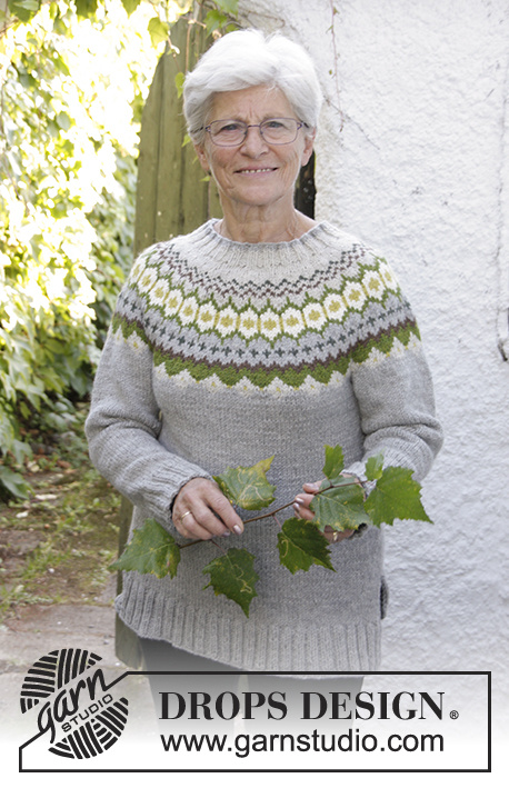 Blusa DROPS ai ferri in "DROPS Nepal" con dietro rotondo, motivo nordico, lavorata dall'alto verso il basso. Taglia S - XXXL.