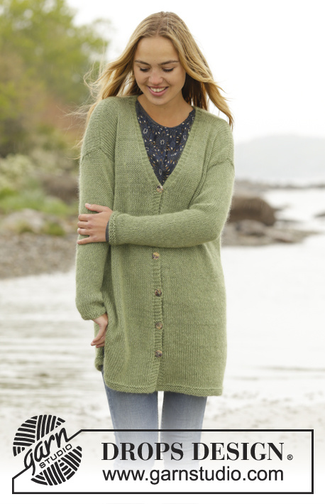 Giacca DROPS ai ferri in "DROPS BabyAlpaca Silk" e " DROPS Kid-Silk " con spacchi ai lati. Taglia S - XXXL.