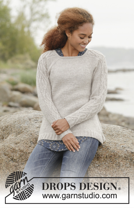 Blusa DROPS lavorata ai ferri in "Merino Extra Fine" con ritorsioni sulle maniche, lavorata dall'alto verso il basso. Taglia S - XXXL.