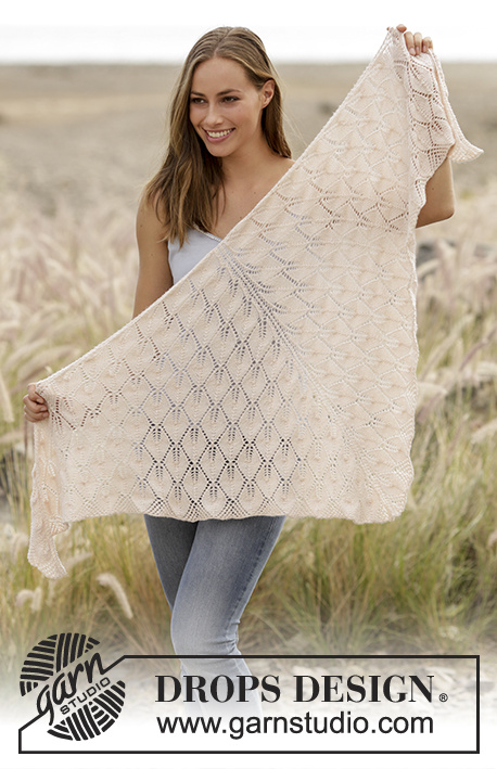 Scialle lavorato ai ferri con motivo a foglie in DROPS BabyAlpaca Silk , lavorato dall'alto verso il basso.