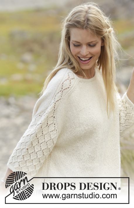 Camicetta con motivo a fori sulla spalla e sulla manica, lavorata dall'alto verso il basso in DROPS Puna . Taglia S - XXXL