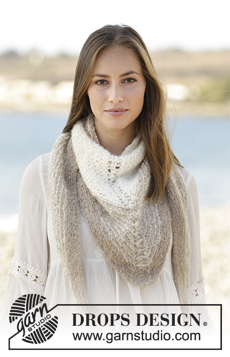 Scialli a maglia legaccio e strisce, lavorati ai ferri in DROPS Alpaca Bouclé .