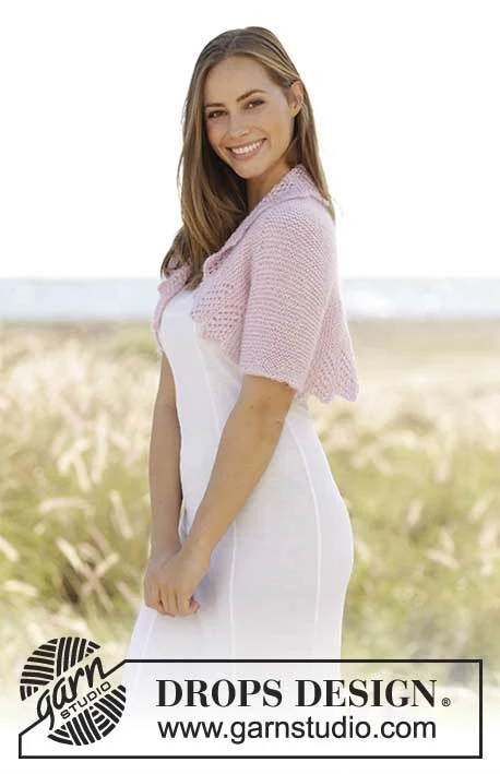 Bolero lavorato ai ferri con i ferri accorciati, il motivo dei buchi e la maglia legaccio in DROPS Baby Merino e DROPS Kid-Silk. Taglia XS - XXL.