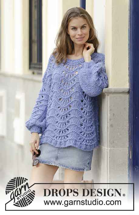 Blusa con motivo a onde, lavorata dall'alto verso il basso. Taglia S - XXXL. Il lavoro è lavorato con 2 capi di DROPS Air.