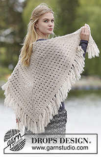 Scialle DROPS ai ferri in Brushed Alpaca Silk con motivo a buchi e frange