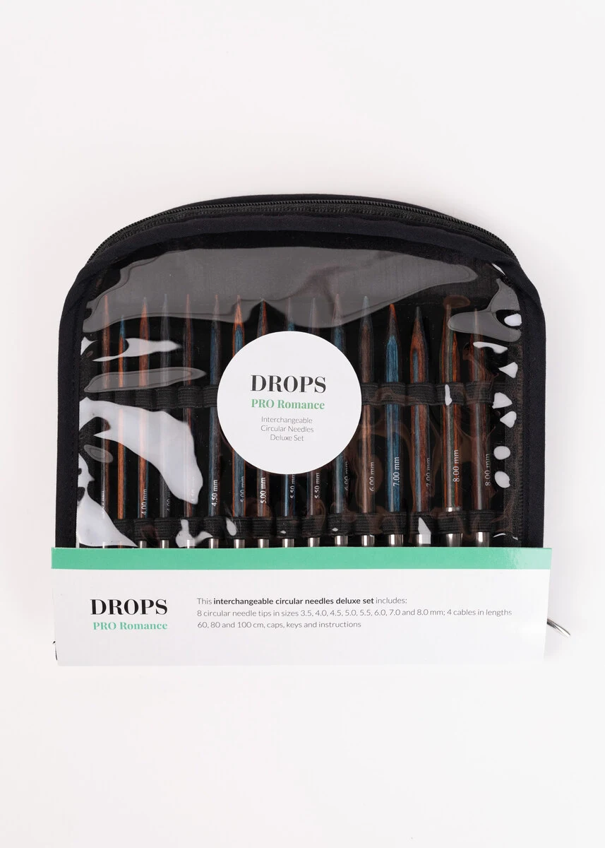 Un ulteriore vantaggio è che questo lussuoso set include una gamma di misure diverse per soddisfare le tue esigenze. Allora perché aspettare? Acquista oggi stesso un set di ferri circolari intercambiabili DROPS Pro Romance!