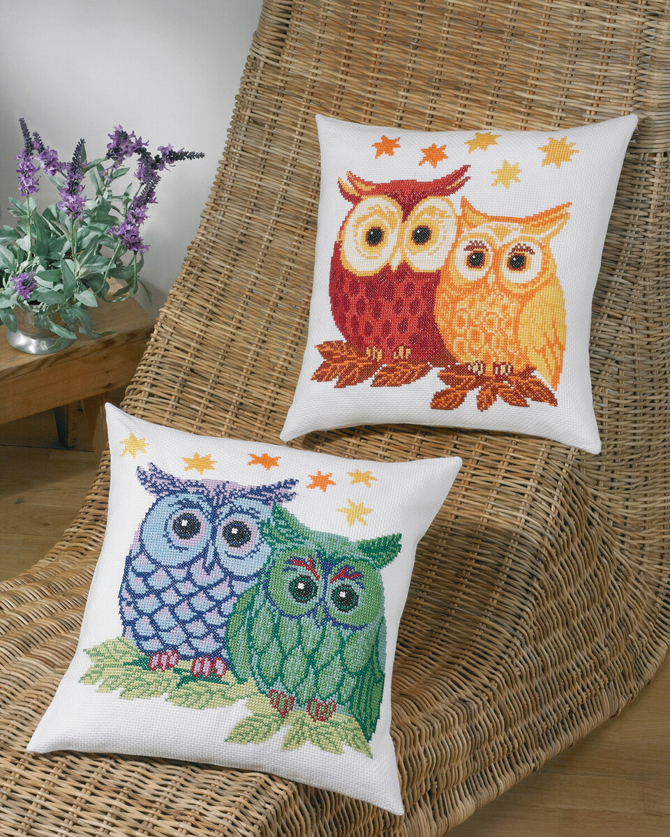 Kit di Ricamo Gufi blu/verde 42x42cm