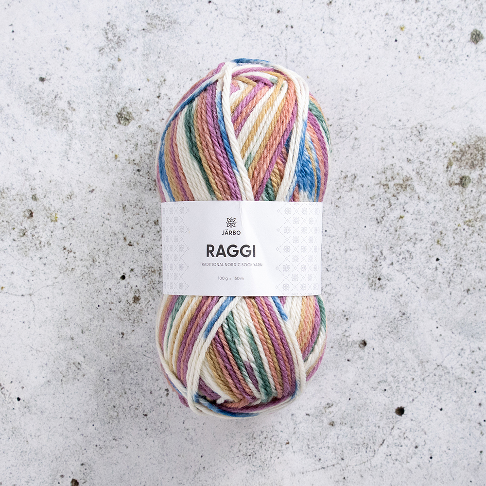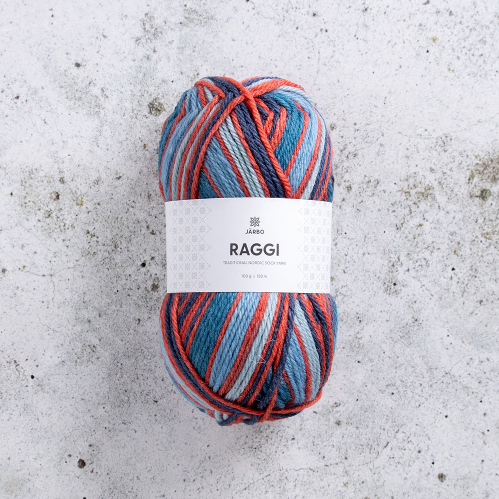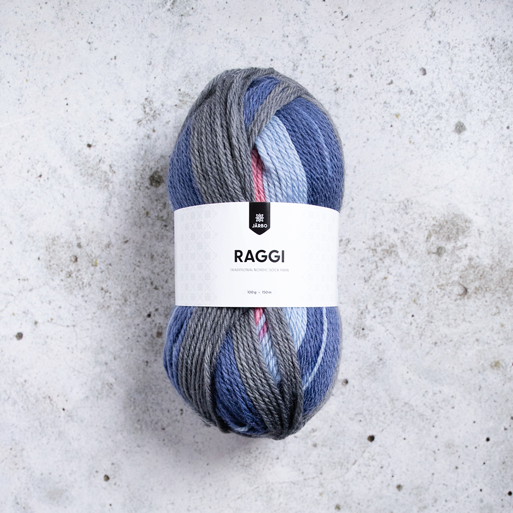 Raggi è un classico filato da calze resistente di Järbo, realizzato con una miscela di lana superwash e poliammide. È adatto sia per calze che per progetti invernali caldi.