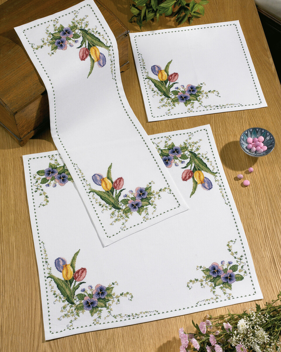 Kit da ricamo 3 tulipani 26 x 79 cm