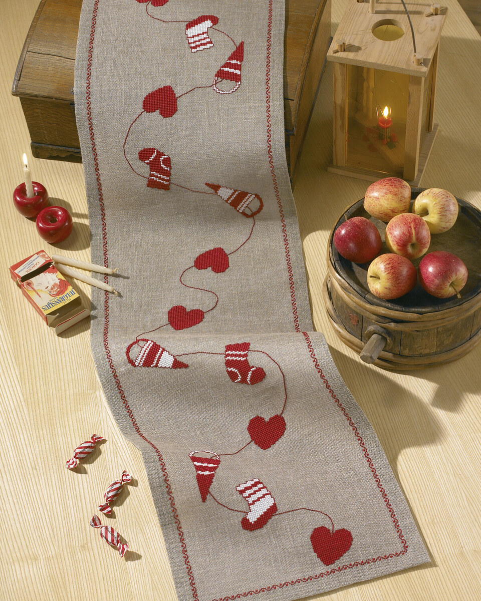Kit per Ricamo Tappeto di Natale su Naturale 33 x 116 cm