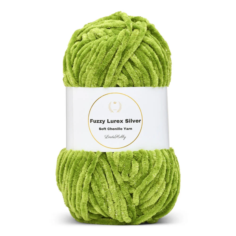 LindeHobby Fuzzy Chenille Silver Lurex è un filato chenille eccezionalmente morbido e voluminoso, arricchito da un filo d’argento intrecciato che dona eleganza e brillantezza ai tuoi progetti. Combina la classica consistenza vellutata del chenille con una finitura metallica decorativa – perfetto per creazioni che vogliono distinguersi.