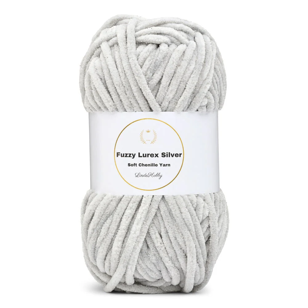 Fuzzy Chenille Silver Lurex offre la combinazione perfetta di morbidezza, volume e una sottile lucentezza – ideale per progetti creativi che non passano inosservati.