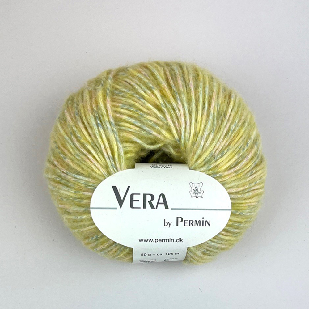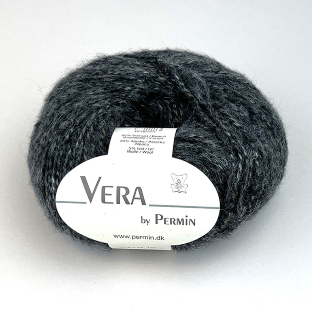 Permin Vera è un filato chainette realizzato con fibre naturali. In questo filato, lana e alpaca vengono delicatamente soffiate in una catena di cotone, creando una struttura leggera, morbida ed elastica che risulta confortevole sulla pelle. È prodotto in Italia con un focus su sostenibilità, rispetto per l'ambiente e benessere animale.