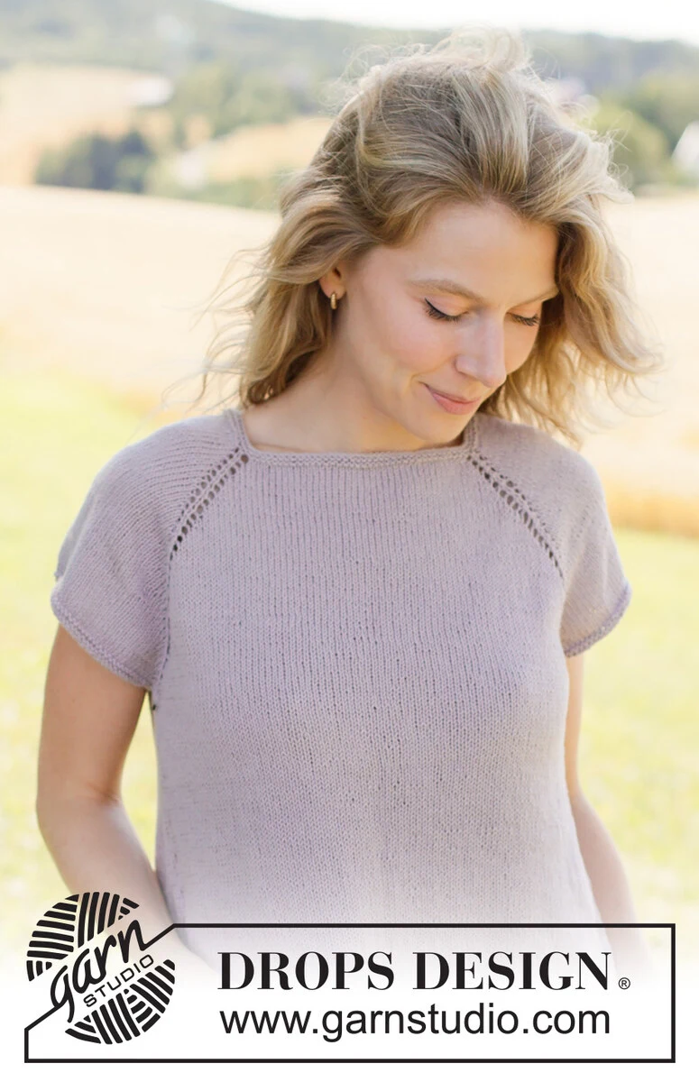Top lavorato ai ferri in DROPS Safran. Lavorato dall’alto in basso a maglia rasata con raglan, maniche corte e coste. Taglie: XS - XXXL.