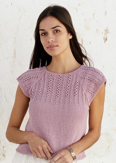 Nella selezione troverai sia top con maniche corte che completamente senza maniche. Varia anche la forma dei top, alcuni con collo alto, altri con collo aperto, per esempio. Lavorando a maglia un top, puoi anche esplorare diverse tecniche di lavorazione a maglia. Le ricette per i top offrono di tutto, dalle monete a foglia, ai modelli di fori e ondulati, alle costole, al raglan e ai colpi di scena.