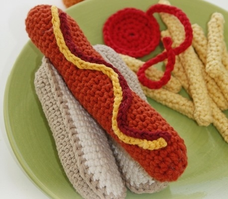 Un altro ottimo regalo per i bambini più piccoli dai 3 agli 8 anni è il cibo per il corpo all'uncinetto. Il cibo può essere preparato in modo molto realistico e si adatta perfettamente alla cucina da gioco di casa. È anche un ottimo modo per utilizzare gli avanzi in quanto richiede quantità molto piccole di molti colori diversi. Raccomandiamo di lavorare all'uncinetto il cibo per il corpo in filato di cotone, poiché può essere lavato in lavatrice se il cibo dovesse essere in bocca o sul pavimento. Fortunatamente, abbiamo una vasta selezione di filati di cotone, quindi sei sicuro di trovare la tonalità perfetta per il gelato alla fragola o la crosta di pizza.