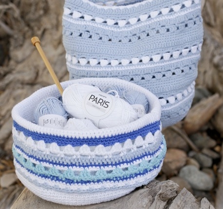 Ora che siamo ai regali pratici, anche un cestino all'uncinetto è un regalo davvero carino e utile. I cestini possono essere realizzati in molti modi diversi e sono super pratici per la conservazione. I cestini all'uncinetto sono lavorati all'uncinetto come spesso in filato di nastro, filato di tessuto o diversi fili di filato di cotone. Questo è fatto per ottenere uno spessore sul cesto, che può stare in piedi da solo. Il filato a nastro è un filato di cotone elastico, che spesso consiste in cotone riciclato e una fibra sintetica come la poliammide per dargli forza ed elasticità.
