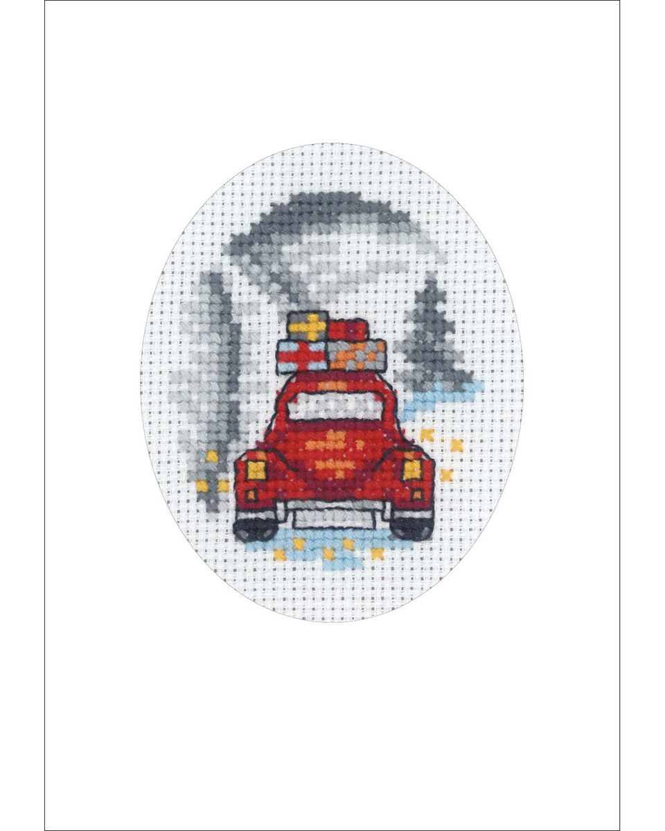 Kit Ricamo Auto Rossa Biglietto Natalizio 9 x 13 cm