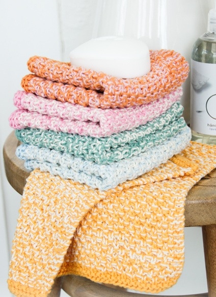 Quando lavori a maglia con uno dei nostri filati di cotone, puoi scegliere tra un'ampia gamma di bellissimi colori. Questo ti dà l'opportunità di scegliere esattamente i colori che si abbinano agli altri colori della tua cucina. E con i panni lavorati a maglia in bellissimi colori, aggiungerai rapidamente colore alla vita di tutti i giorni e alla cucina.