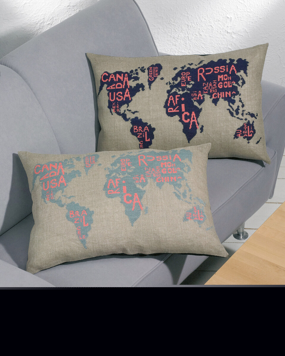 Kit da Ricamo Mappa del Mondo blu 68 x 46 cm